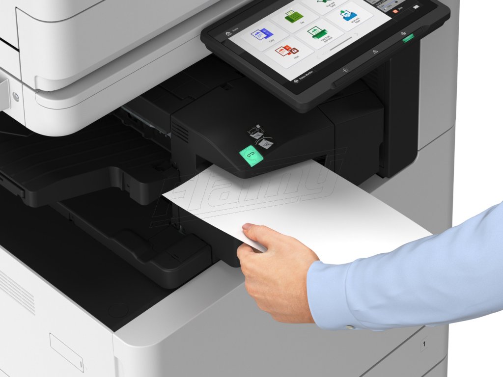 Ergonomický design výstupní přihrádky papíru zlepšuje viditelnost při vyjímání papíru, zatímco intuitivní uživatelské rozhraní eliminuje potřebu školení. Kompatibilita s uniFLOW Online a Cloud Connector zajišťuje bezproblémové připojení ke cloudu.